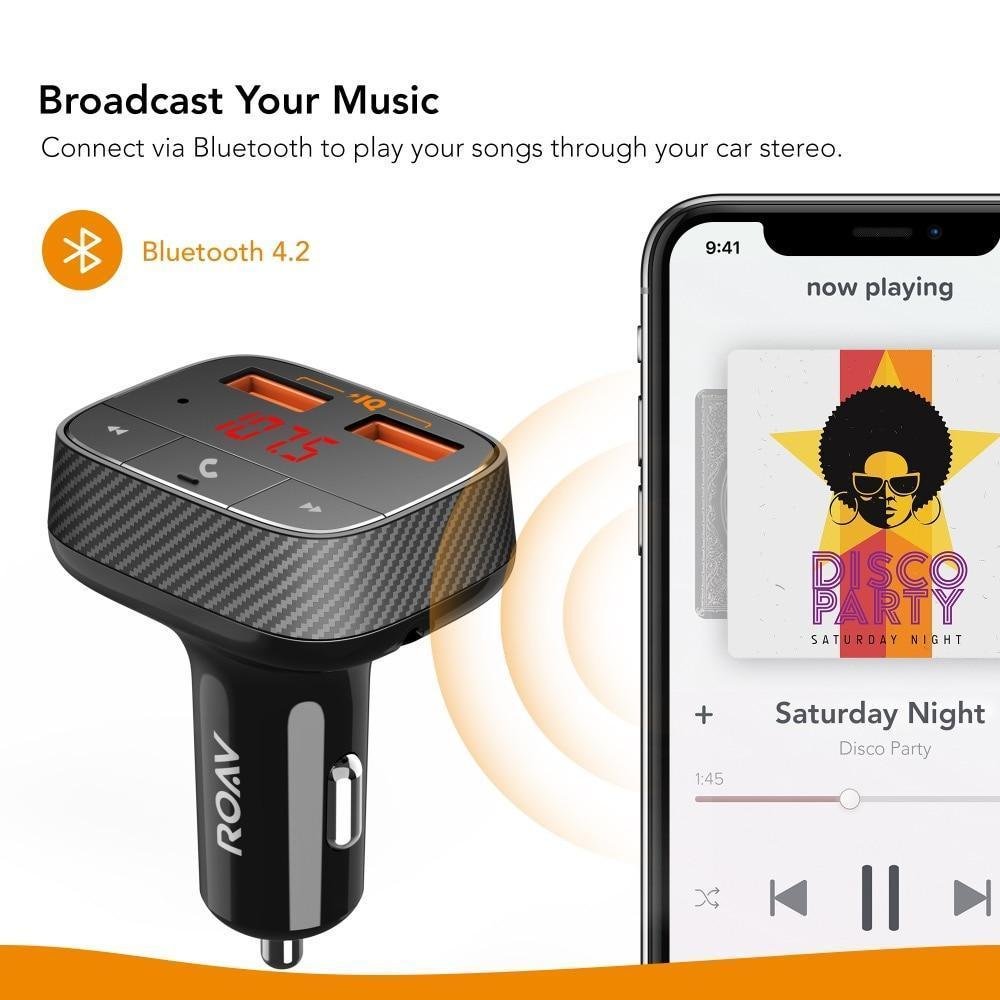 Anker Roav SmartCharge F0 Car Charger with FM Transmitter Bluetooth Receiver