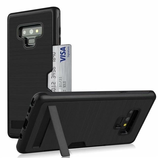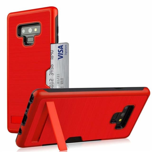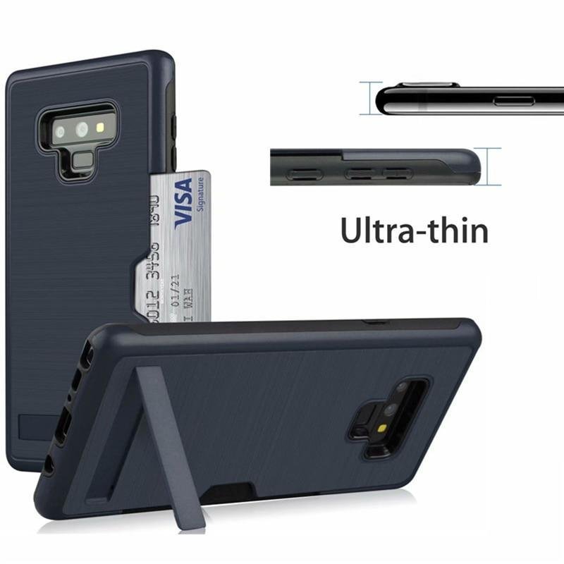 Samsung Dual Layer Card Slot Hard PC Silicone Shockproof Stand Cover for Galaxy Holder Case