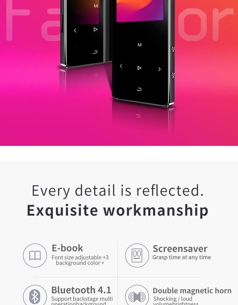 New Version MP3 Player with bluetooth Speaker touch screen and built-in 16G