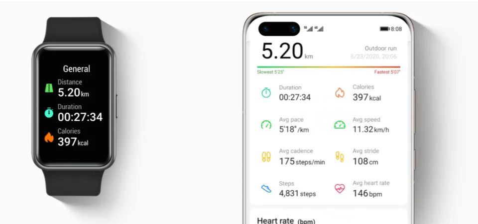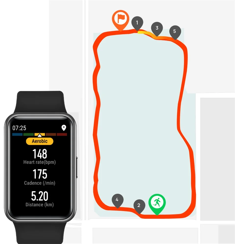HUAWEI WATCH FIT is able to detect the start of a workout, recognize the workout type and remind you to track it.11 Whether you are running or swimming, HUAWEI WATCH FIT can track the exact workout metrics you need. After you finish, you can see more detailed metrics, professional analysis and scientific guidance in HUAWEI Health App.